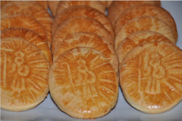 Batimos la mantequilla y el azúcar hasta formar una pasta fina y blanca. Batimos dos huevos y los añadimos a la mantequilla. Mezclamos la harina con la levadura y la ralladura de la piel del limón y se lo añadimos despacio a la mezcla. Lo amasamos hasta conseguir una masa lisa, si hace falta añadimos algo más de harina. Ponemos la masa encima del poyete donde habremos puesto un poco de harina y alisamos la masa con un rodillo hasta que tenga unos dos centímetros de grosor. Cortamos la masa con un molde ovalado y marcamos con un marcador de San Blai. Batimos un huevo y pintamos, los ponemos en una bandeja para el horno donde habremos puesto papel para hornear. Los pondremos en el horno a 180 º unos 15 minutos, hasta que los veamos dorados.