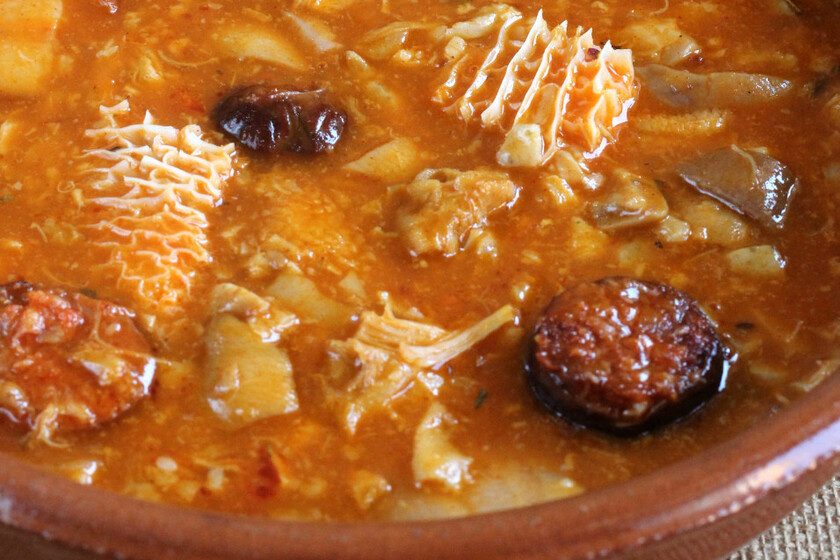 Dejamos que se haga durante unos cinco minutos, añadimos el brandy el agua, la harina y la hoja de laurel. Lo dejamos que se cueza unos 5 minutos más. Añadimos los callos lo mezclamos y lo dejamos se haga a fuego medio unos 30 minutos. Si hace falta podemos añadir caldo de la cocción de los callos.