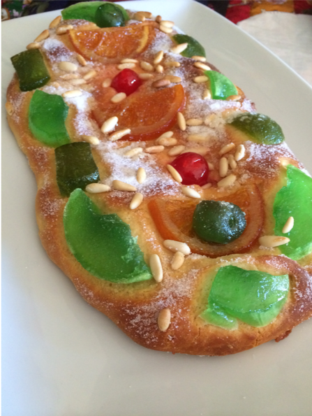 Cogemos la masa le damos forma y decoramos con la fruta confitada y los piñones. La introducimos en una caja de plástico y la tapamos, dejamos reposar 4 horas hasta que doble el volumen.