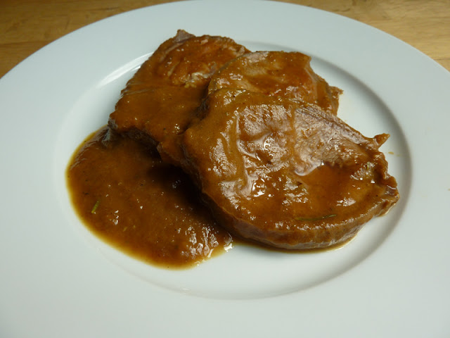 Cuando lo tengamos hecho lo dejamos que se enfríe y cortamos la ternera bien fina. La salsa la pasamos por el colador chino, ponemos la carne en la cazuela, la salsa por encima y cuando nos la vayamos a comer lo calentamos todo junto unos 10 minutos.